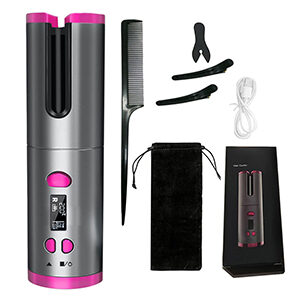Anti-Tangle Wireless Auto Curling Iron Wand with LCD Display